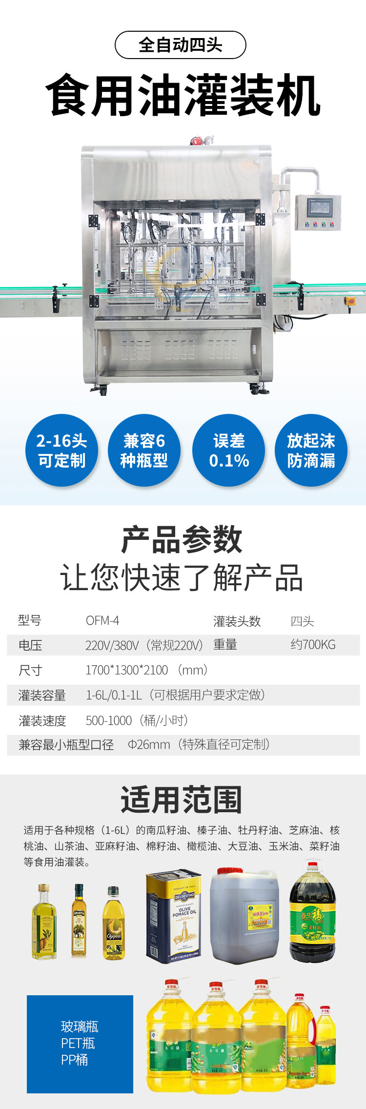 適用于各種規(guī)格(1-6L)的南瓜籽油、榛子油、牡丹籽油、芝麻油、核桃油、山茶油、亞麻籽油、棉籽油、橄欖油、大豆油。