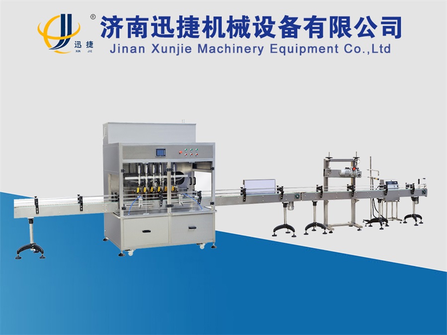 1、自動灌裝機(jī)+自動壓蓋機(jī)+自動貼標(biāo)機(jī)+噴碼機(jī)