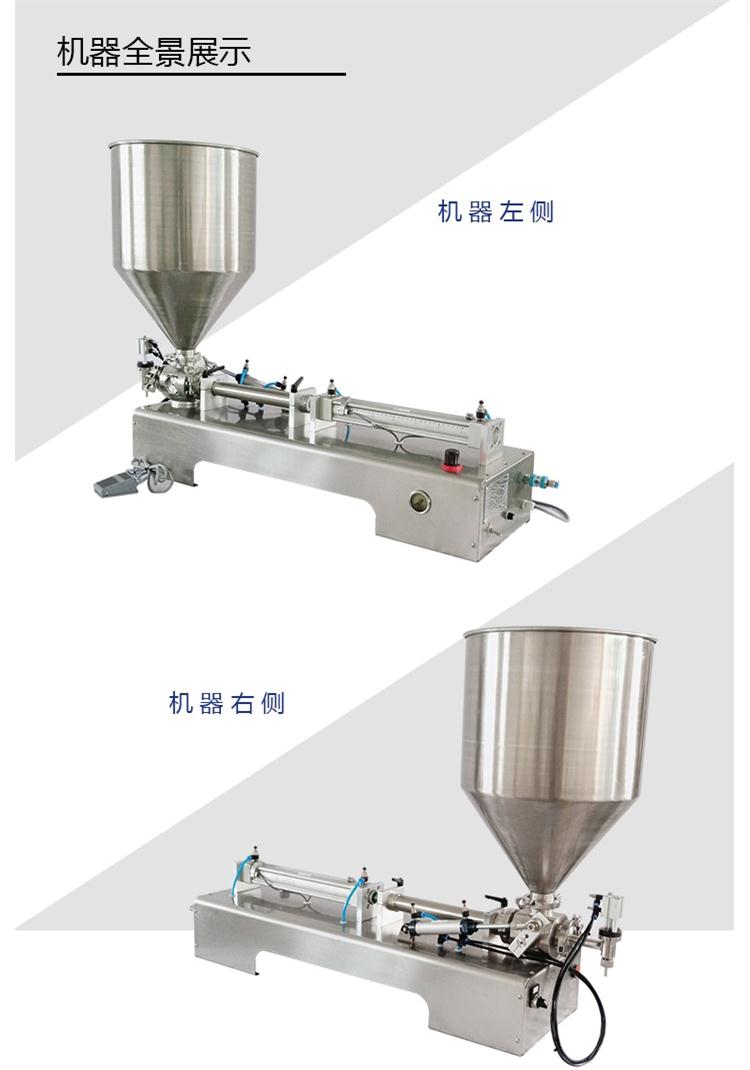 氣動膏體灌裝機主要適用于化工、食品、日化、藥品、農藥、潤滑油等行業的液體膏體等物質的定量灌裝,該灌裝機缸體、機殼、料斗均由不銹鋼材質制成,活塞有四氟乙烯材料制成,氣動部分均采用氣動元件,符合GMP[要求,氣動膏體灌裝機的灌裝量和灌裝速度可任意調節,擁有腳踏開關和自動灌裝功能,精度高,結構簡潔,操作便利。